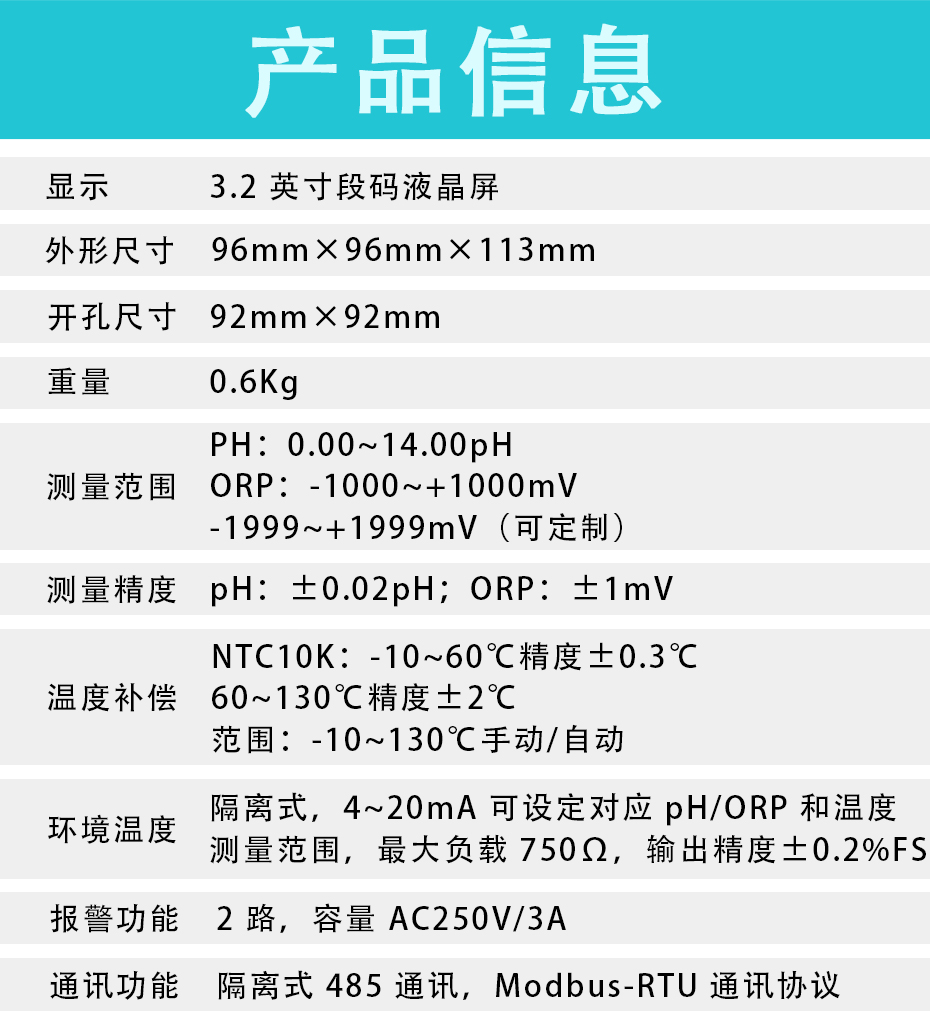 適用場合:PH/ORP測試儀是一款智能在線化學(xué)分析儀器之一,是一款廣泛應(yīng)用于火電、化工化肥、冶金、環(huán)保、制藥、生化、食品和自來水等溶液中PH值或ORP值和溫度的連續(xù)監(jiān)測。 連續(xù)監(jiān)測數(shù)據(jù)通過變送輸出連接記錄儀實現(xiàn)遠(yuǎn)傳監(jiān)控與記錄,也可以連接RS485接口通過MODBUS-RTU協(xié)議可方便聯(lián)入計算機實現(xiàn)監(jiān)控與記錄。